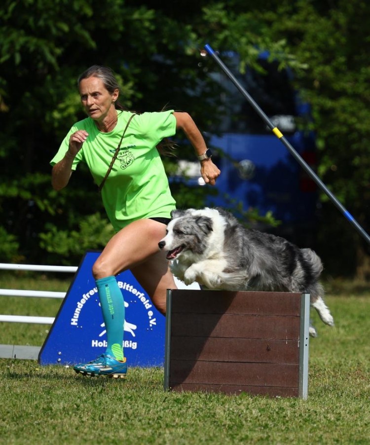 Ich bin seit 2020 im Verein. Mein Hund Moppi-Fritz startet mit Hendrik Feuerstein im 2000m Geländelauf regelmäßig auf Turnieren.