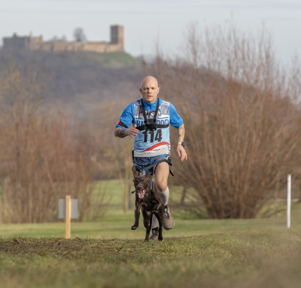 Ich bin seit 2020 im Verein und starte mit meinem Leihhund Moppi-Fritz regelmäßig im 2000m Geländelauf auf Turnieren.